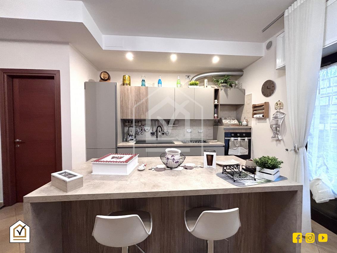 L’abitazione ci accoglie con ingresso nell’atrio di proprietà che conduce all’interno della casa, dove si sviluppa la zona giorno composta da un ampio e luminoso salone, valorizzato da controsoffittatura con faretti che rendono l’ambiente moderno e accogliente. Completa il piano una cucina abitabile con affaccio sul balcone interno e un bagno finestrato con box doccia.