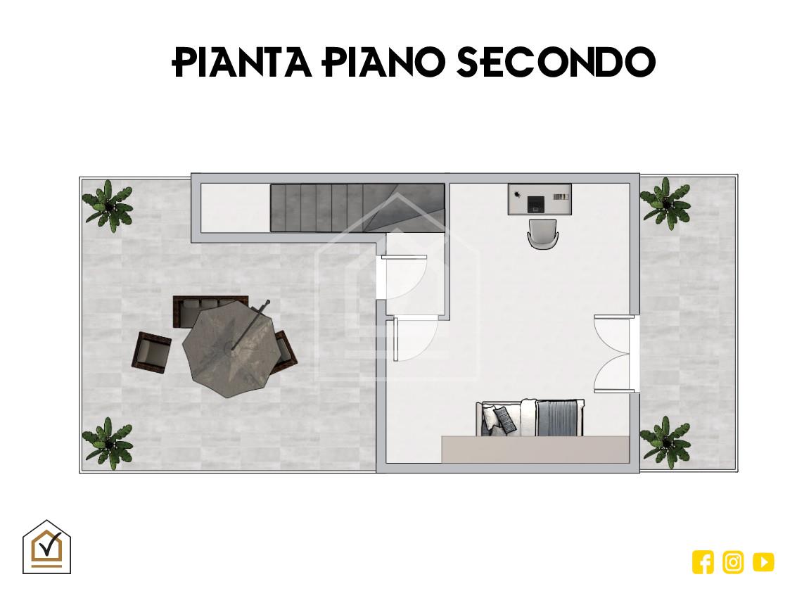 Al secondo piano troviamo una mansarda con camera studio e accesso diretto al terrazzo a livello, uno spazio ideale da vivere come zona relax, studio o area hobby.