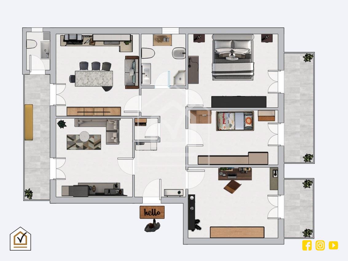 La casa si presenta in ottimo stato, con elegante pavimentazione in marmo e porte bianche. Completano la proprietà tre balconi con doppia esposizione, che garantiscono grande luminosità durante tutta la giornata.
