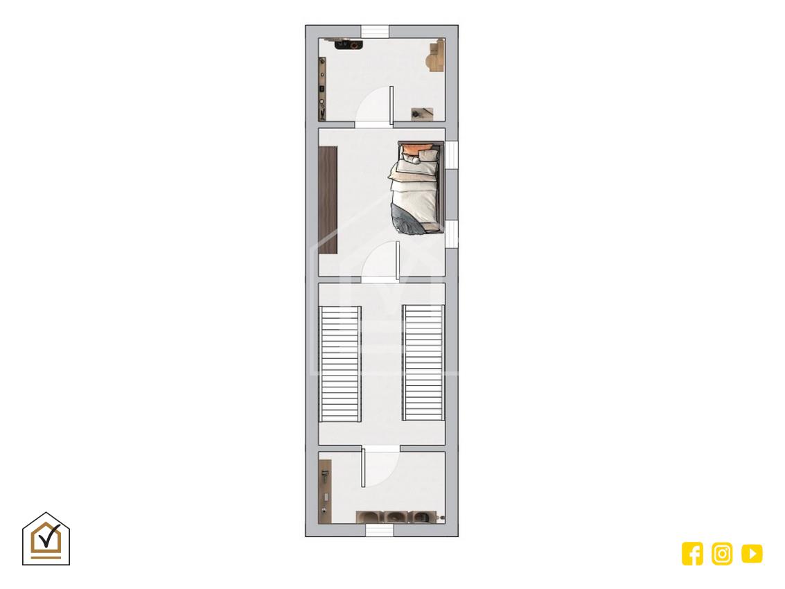 L’ingresso si apre su un accogliente soggiorno pranzo, ambiente funzionale e luminoso che rappresenta il cuore della casa. Salendo al piano superiore troviamo la zona notte, composta da due comode camere da letto e due bagni.