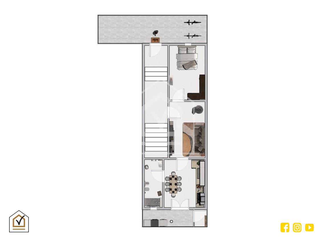 L’immobile è composto da due vani ben distribuiti. L’ingresso si apre su un accogliente salone, dal quale parte un comodo corridoio che collega i vari ambienti della casa. Proseguendo troviamo sulla destra la cucina, funzionale e ben organizzata; sulla sinistra la camera da letto, ampia e confortevole. Accanto alla cucina, sempre sul lato destro del corridoio, è presente il bagno.