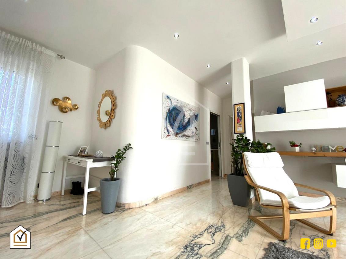 L'immobile, composto da quattro vani con doppi accessori, si caratterizza per l'ottima distribuzione interna. La zona giorno si apre su ampio salone, imprezosito da accesso diretto al balcone, e su una spaziosa sala da pranzo con balcone interno, perfetta per momenti conviviali. Completa la zona, un comodo bagno di servizio.