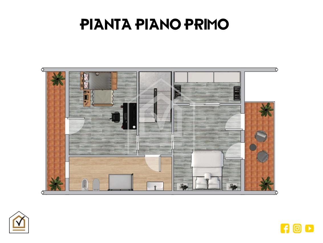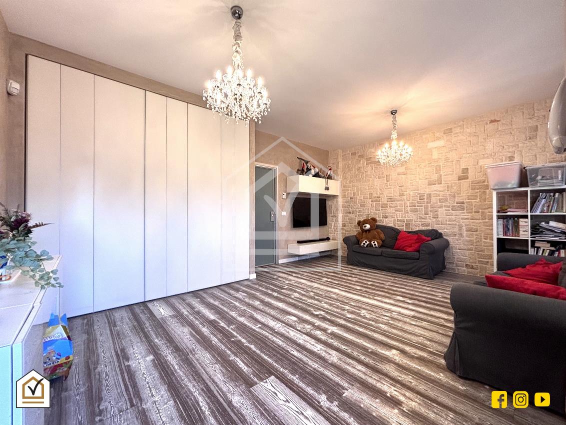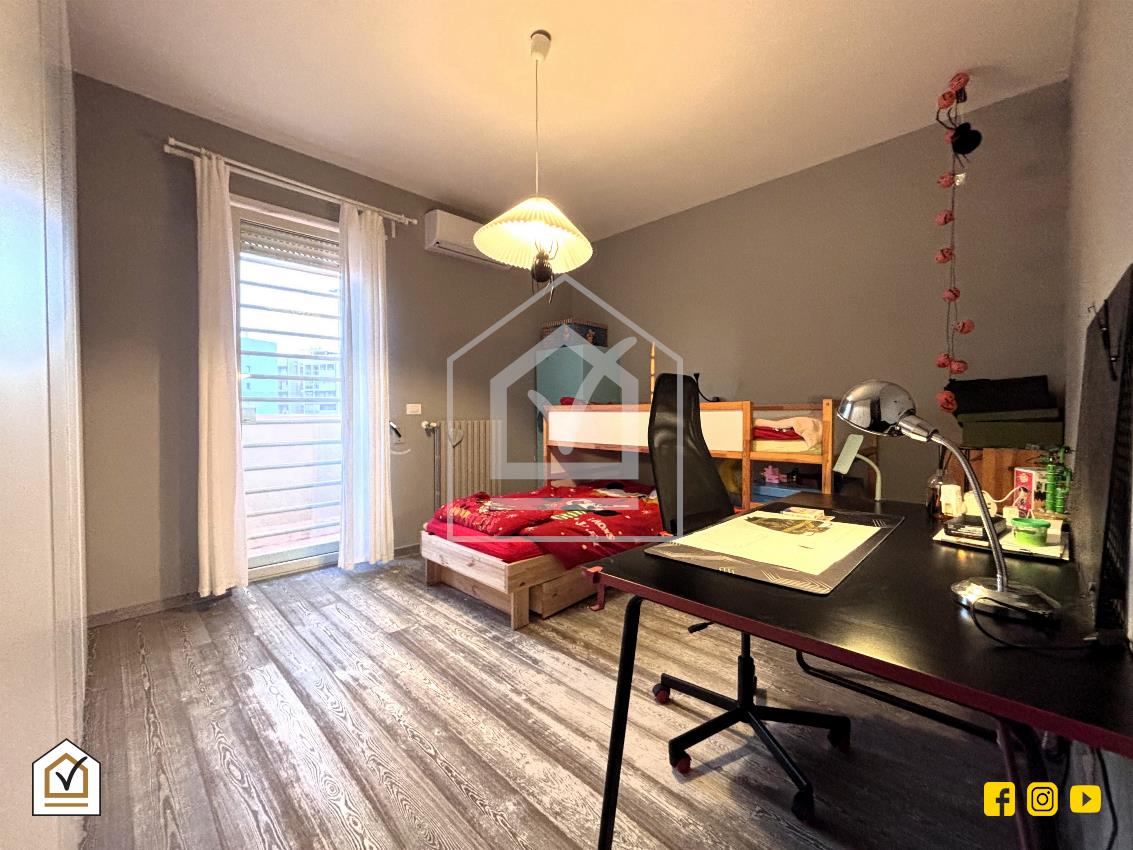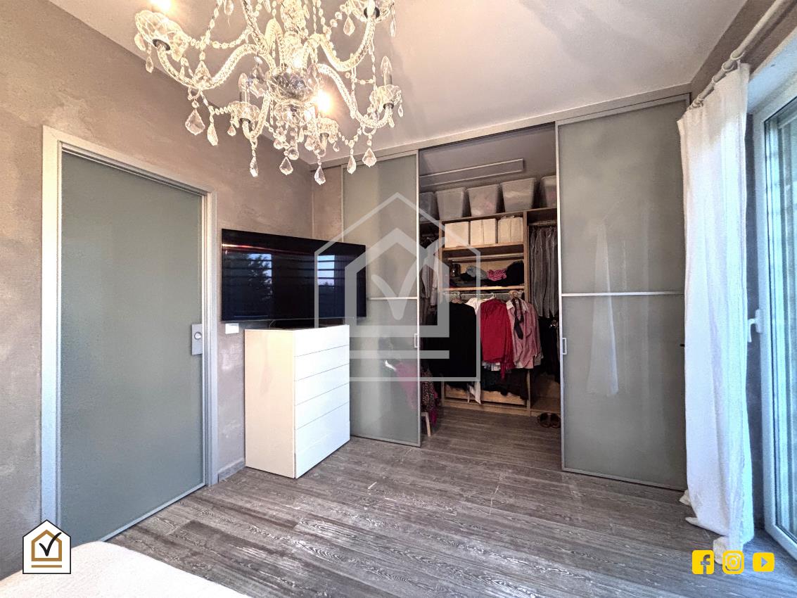 Attraverso una comoda scala interna si raggiunge la zona notte, caratterizzata da un’ottima luminosità grazie alla doppia esposizione e alla presenza di due balconi. La camera matrimoniale, ampia e raffinata, è arricchita da una spaziosa cabina armadio, ideale per garantire comfort e organizzazione. Il piano ospita inoltre una cameretta e un ampio bagno padronale, rivestito in pietra vulcanica e dotato di una moderna doccia walk-in, con pavimentazione in gres effetto legno che coniuga estetica e praticità.