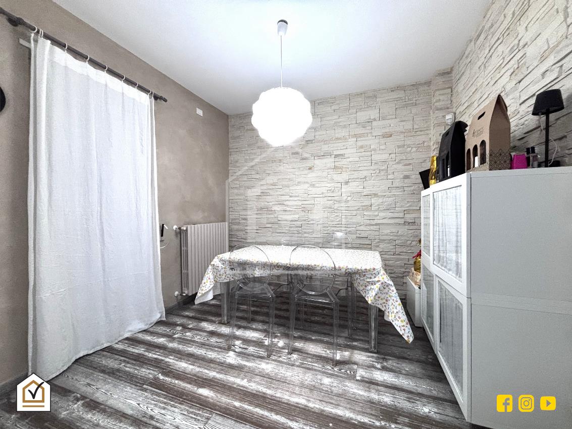 La cucina abitabile, ampia e perfettamente organizzata, è dotata di penisola e zona pranzo, configurandosi come un ambiente conviviale e funzionale, ideale per la vita quotidiana e per accogliere ospiti. Da qui si accede al cortile interno, uno spazio riservato e accogliente perfetto per vivere momenti di relax all’aperto. Completa il piano un bagno con box doccia e sanitari sospesi.