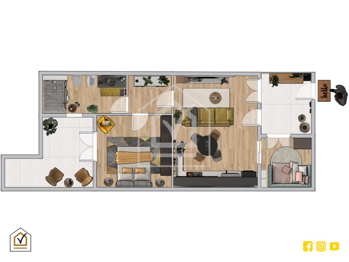 All'ingresso dell'abitazione, situata al piano terra, vi è un atrio pavimentato privato e indipendente che conduce direttamente nel cuore della casa. La zona giorno si presenta con un open space luminoso e moderno, dove l'angolo cottura a vista si integra con l'area pranzo e il living in un ambiente armonioso pensato per la massima funzionalità. La cameretta, anch'essa dotata di un pratico accesso all'atrio privato, offre una versatilità ideale per diverse esigenze familiari.