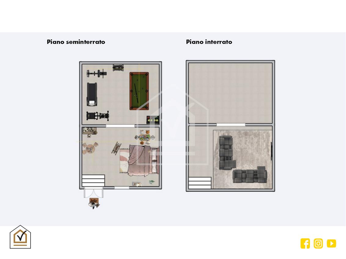 Completano la proposta due ampie tavernette: una situata al piano seminterrato, composta da due camere di cui una finestrata, perfetta come studio, sala hobby o zona per gli ospiti, e una seconda posta al piano interrato, dalle medesime caratteristiche, ideale come capiente zona deposito o ulteriore spazio per ogni esigenza.