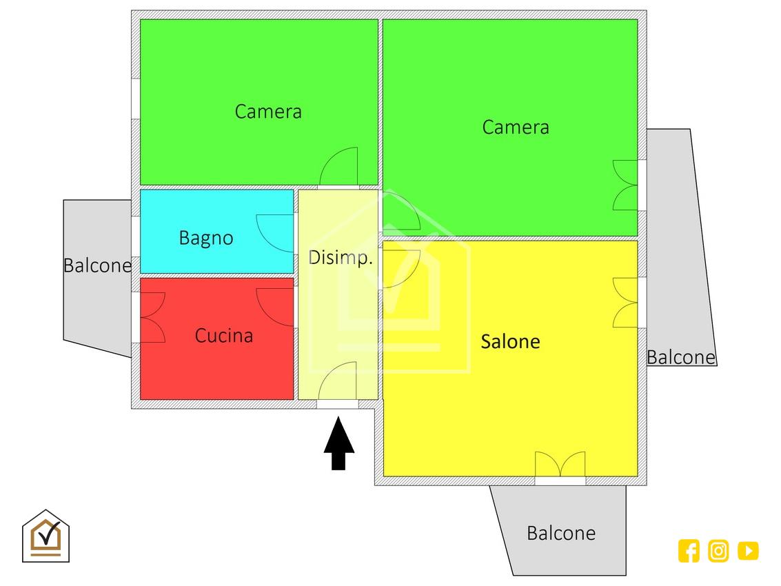 La cucina è separata dal soggiorno, creando così una zona giorno ben definita. Peculiarità dell'immobile è la presenza di finestre in ogni stanza fondamentali per la ventilazione di ogni ambiente e tre balconi ideali per ideale per godersi un pò di aria fresca e per allestire un piccolo angolo verde con piante e fiori.