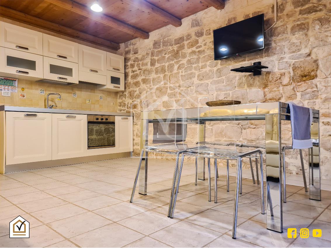 La proprietà immobiliare gode di charme e carattere. Le pareti in pietra viva e le travi in legno del soffitto la rendono ancora più calda e accogliente.