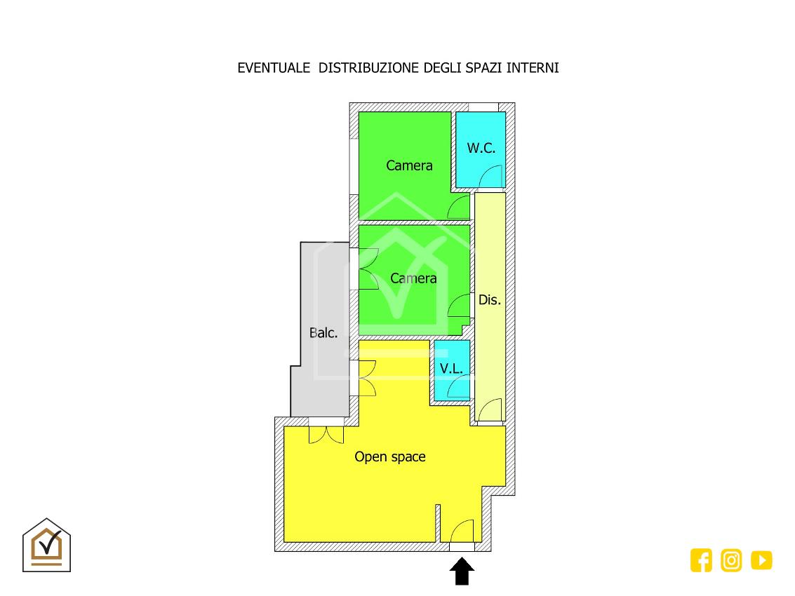 Proseguendo il disimpegno si giunge alla zona notte composta dalla camera matrimoniale, camera da letto e bagno. Attualmente riversa in buono stato ma grazie alla sua pianta regolare è possibile, apportando alcune modifiche, ricreare un moderno open space!