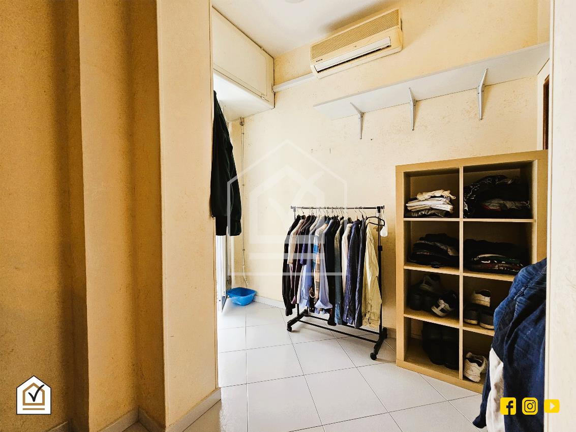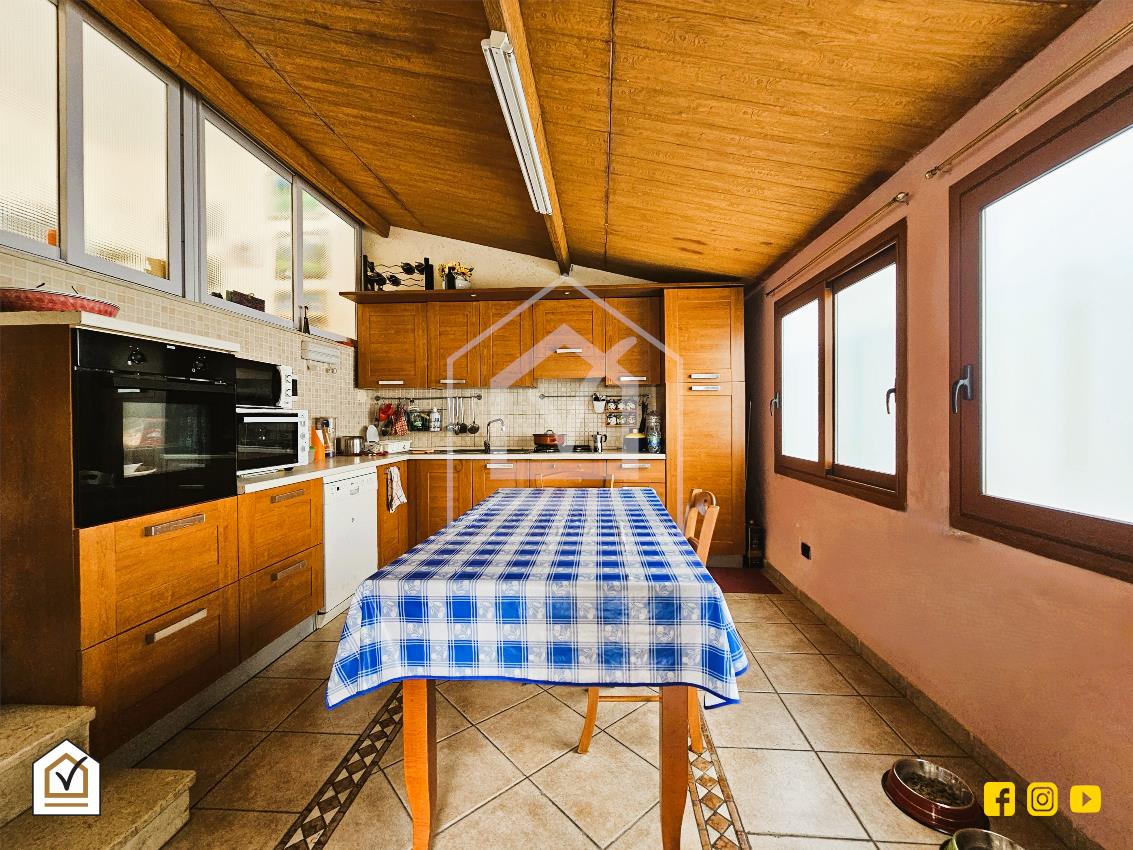 Attualmente riversa in buono stato ma grazie alla sua pianta regolare è possibile migliorarla a proprio piacimento in base alle necessità. Varcando la porta di ingresso si è subito accolti da un ampio e luminoso salone; il disimpegno conduce alla zona notte composta dalla camera da letto matrimoniale con annessa cabina armadio di generose dimensioni, prosegue con altre due camere da letto ed il bagno. Secondo la disposizione attuale la cucina è ricreata nella parte esterna collegata al salone e caratterizzata da luminose vetrate che delineano l'area. A seconda delle necessità è possibile ricreare un ampio e moderno open space riportando all'interno la zona della cucina.