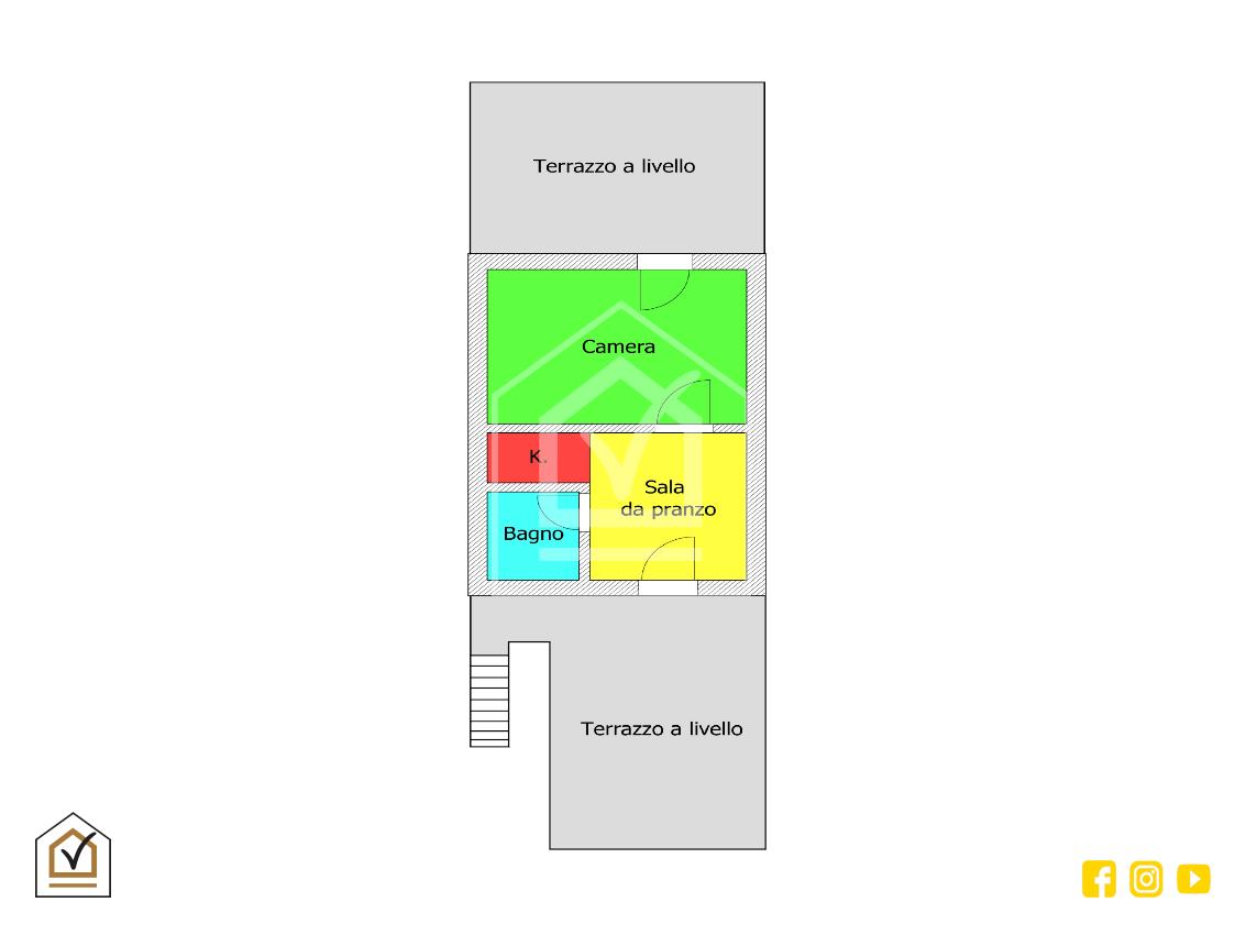 E' composto da una luminosa cucina con esposizione sull'ampio terrazzo abitabile e da una comoda ed accogliente camera da letto, infine troviamo il bagno.