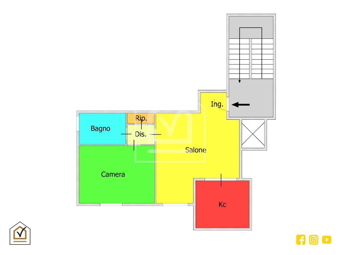 L'abitazione si presenta in ottimo stato interno e si compone di ingresso nel soleggiato soggiorno dotato di accesso all'angolo cottura verandato; il disimpegno divide la zona giorno dalla zona notte, quest'ultima composta da una confortevole camera da letto, bagno padronale con vasca e utile ripostiglio.