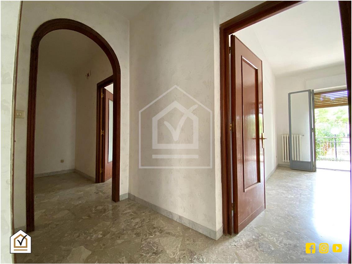 L'appartamento si sviluppa su una pianta ben organizzata e funzionale. All’ingresso, troviamo un ampio disimpegno che introduce direttamente alla zona giorno, composta da un salone spazioso e luminoso. Questo ambiente è caratterizzato da una grande finestra e dall’accesso diretto al primo balcone esterno, che regala una piacevole vista sul verde del Parco Due Giugno.