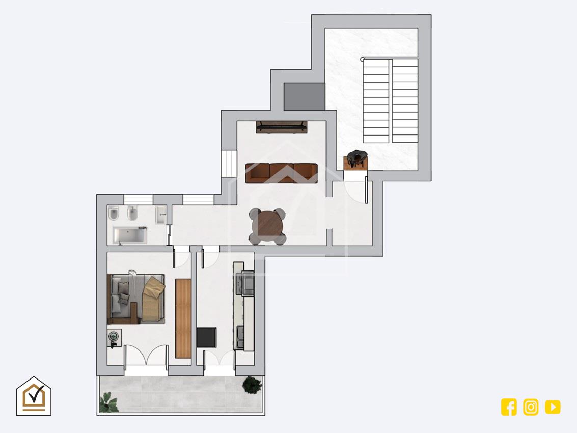 L'abitazione dispone di un'ottima distribuzione degli ambienti, composta da ingresso nell'ampio salone e piccolo disimpegno che conduce al bagno finestrato; completano la cucina abitabile e camera da letto, dotate entrambe di accesso al balcone con affaccio esterno su via Pasubio la quale si potrà scorgere l'affascinante "Chiesa Russa San Nicola".