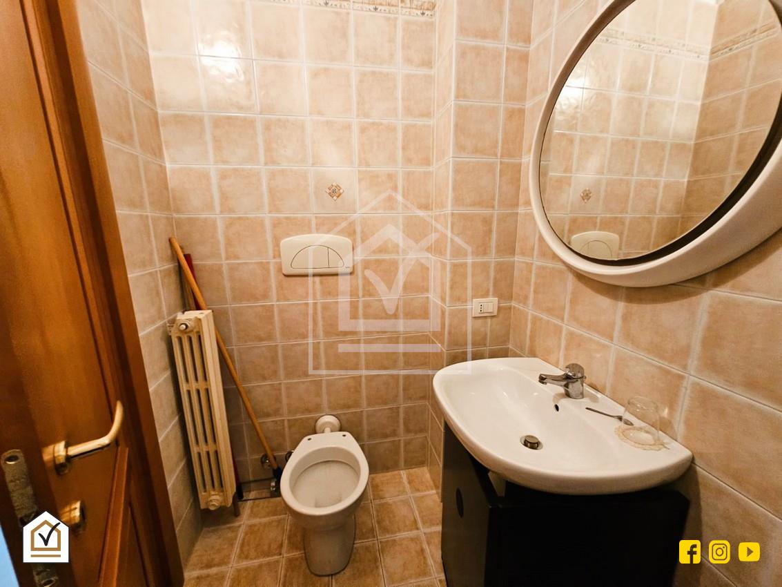 - Bgano con piatto doccia, sanitari a pavimento, lavabo a colonna;