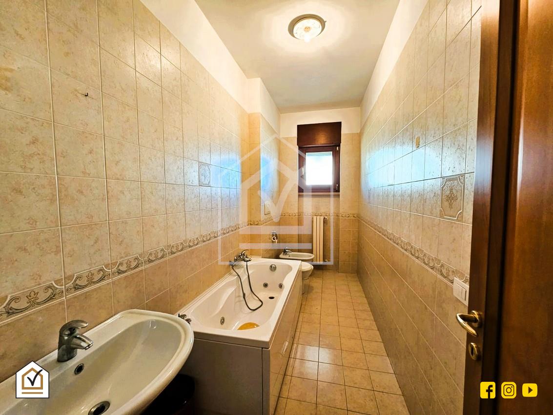 - Bagno con vasca, sanitari a pavimento, lavabo a colonna;