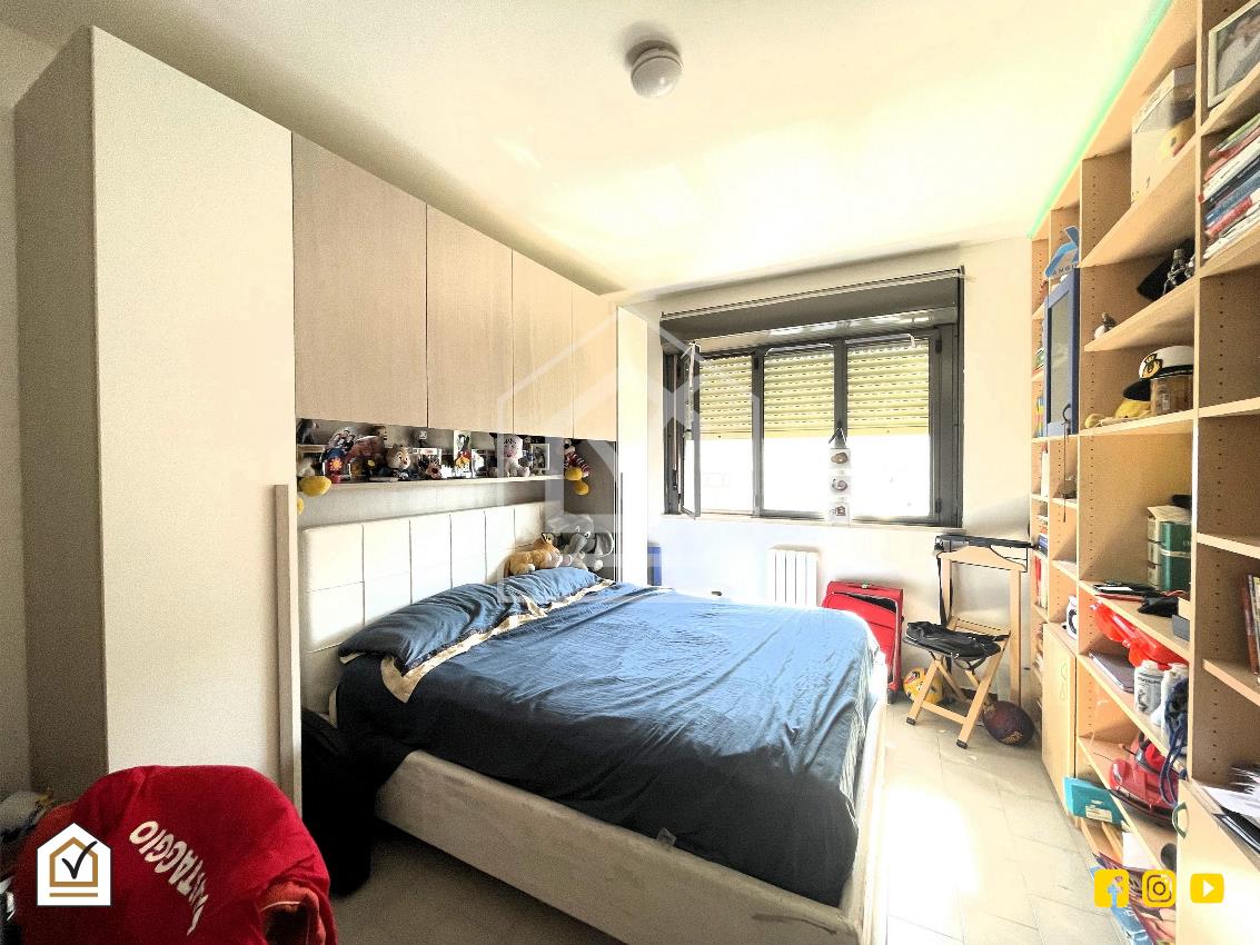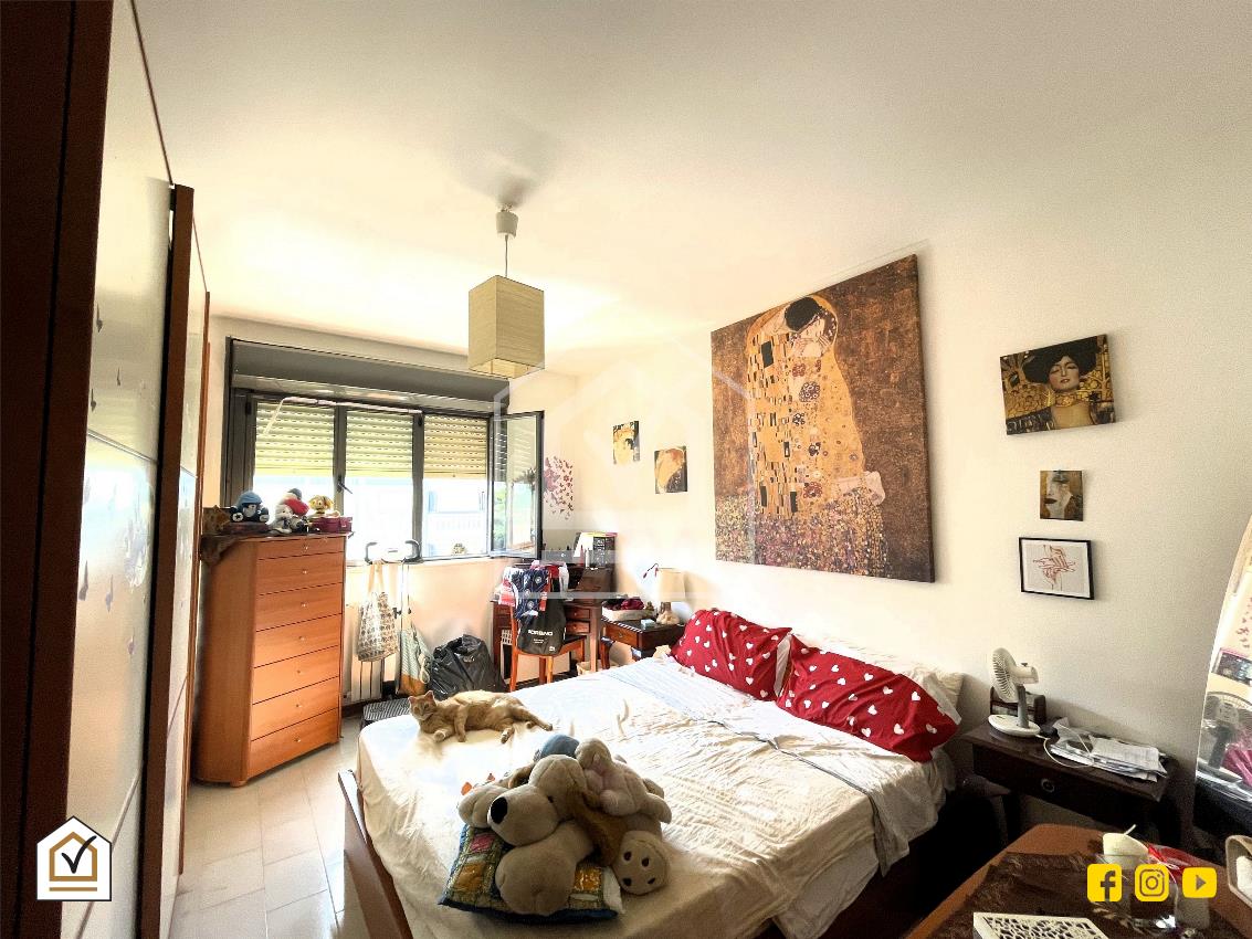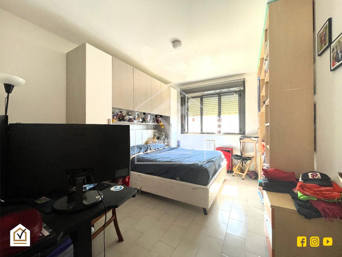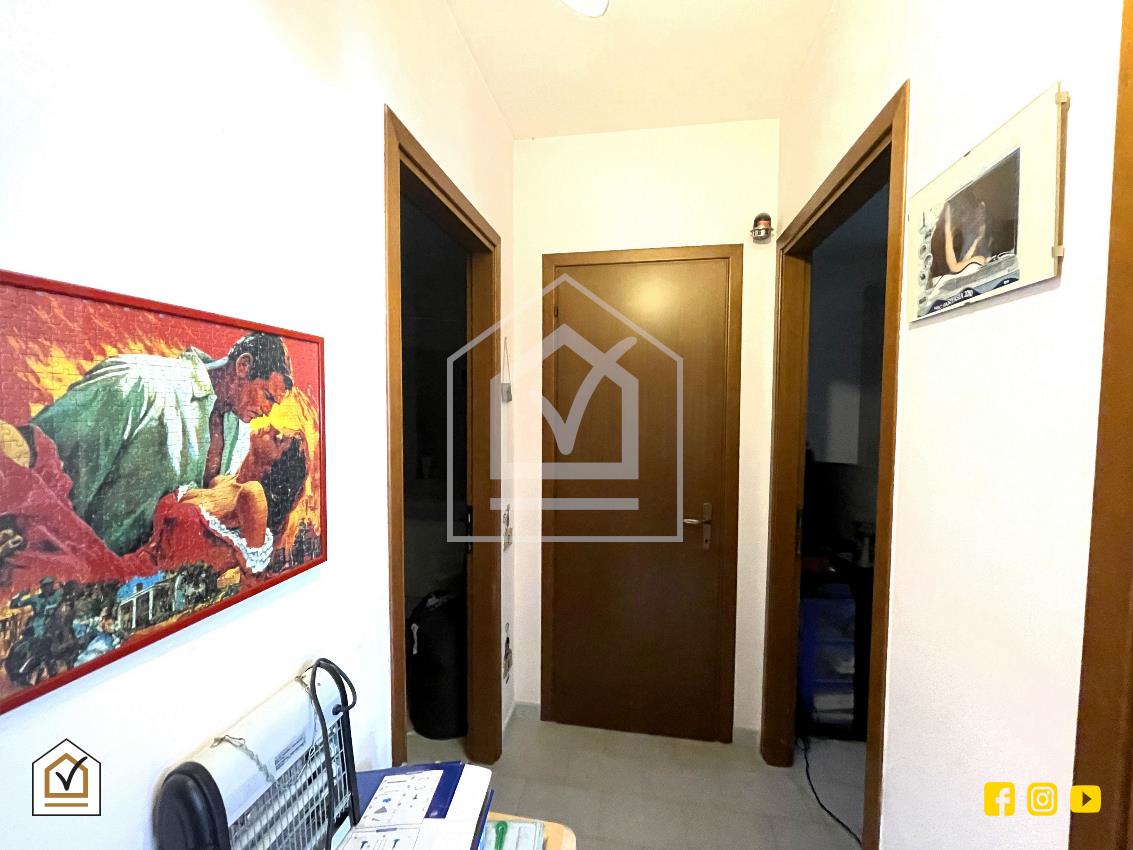 L’ingresso si apre su un disimpegno che conduce, sulla sinistra, alla zona giorno composta da un ampio salone con affaccio su balcone, cucina abitabile e bagno. Sulla destra si sviluppa la zona notte, composta da due camere matrimoniali, entrambe luminose e ben arieggiate.
