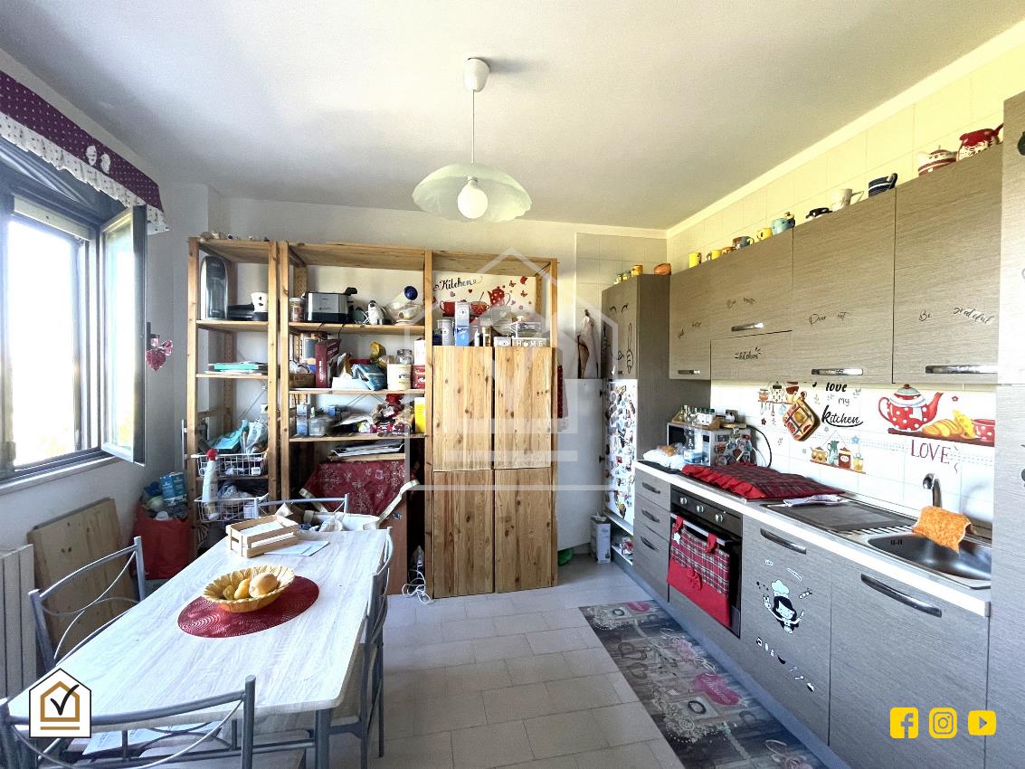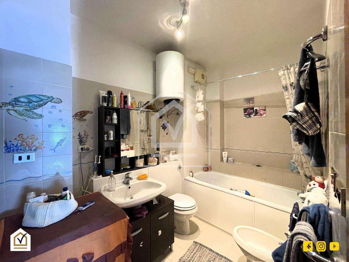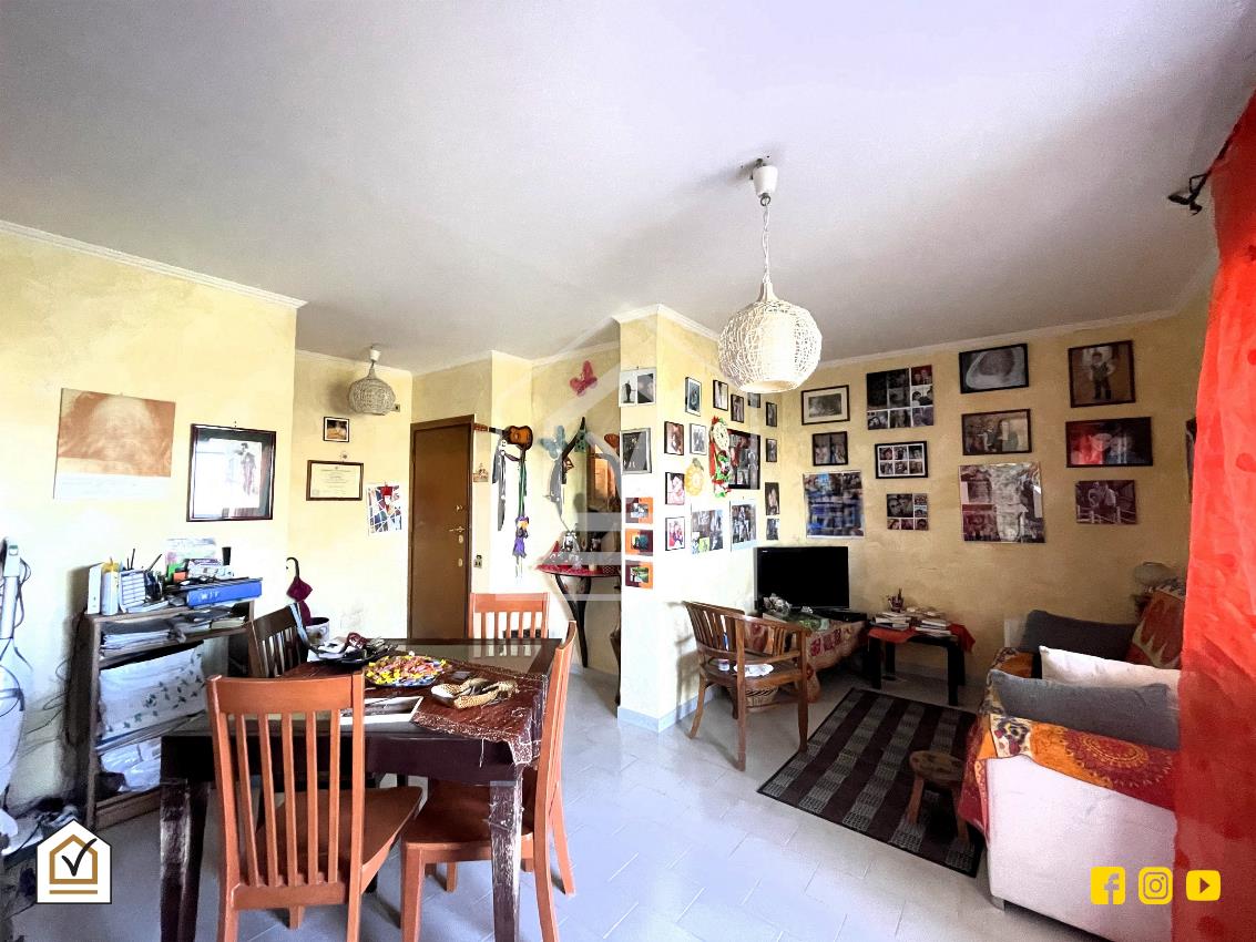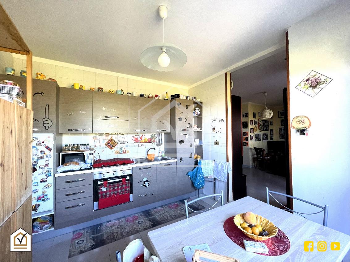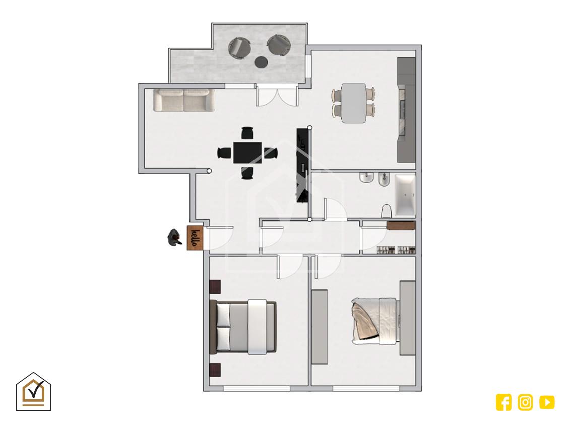 L’ingresso si apre su un disimpegno che conduce, sulla sinistra, alla zona giorno composta da un ampio salone con affaccio su balcone, cucina abitabile e bagno. Sulla destra si sviluppa la zona notte, composta da due camere matrimoniali, entrambe luminose e ben arieggiate.