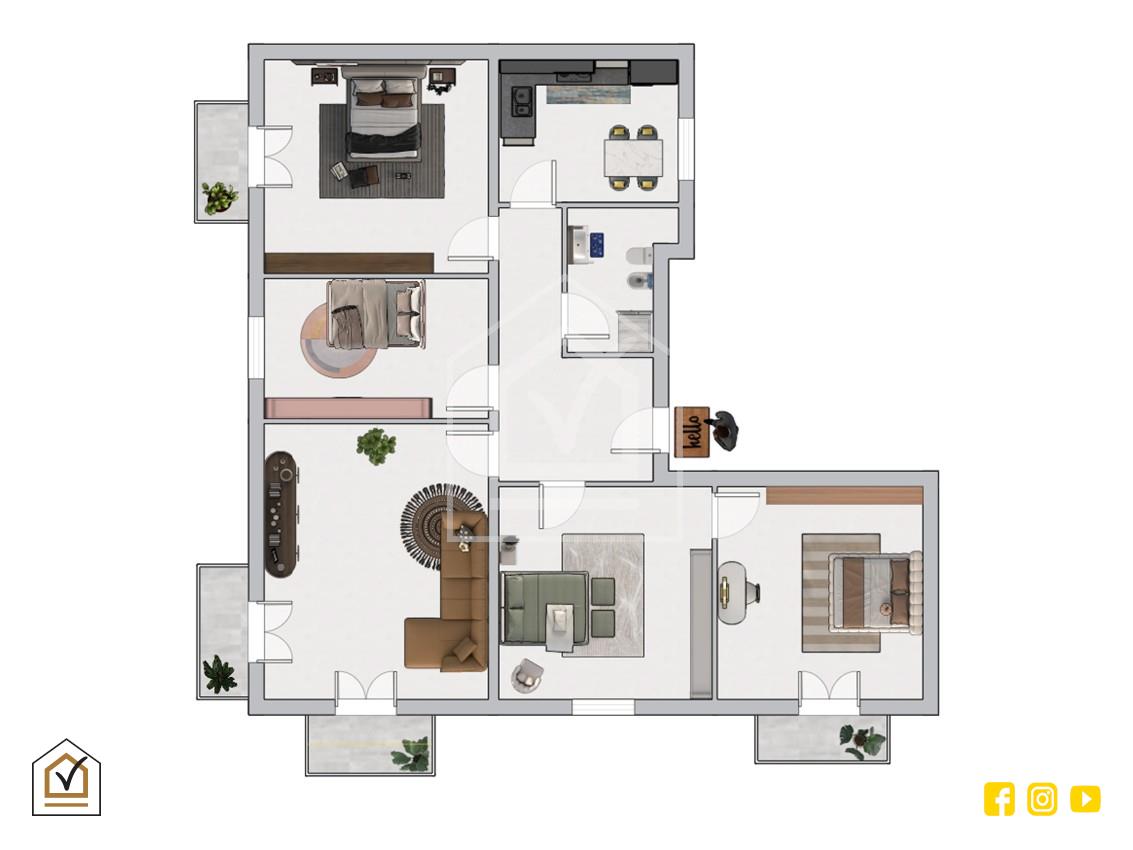 L’ingresso conduce a tutt i gli ambienti tra i quali troviamo: una spaziosa cucina abitabile completa di balcone alla romana, ideale per chi cerca una zona giorno luminosa e funzionale, luminoso salone risaltato da una bellissima esposizione esterna angolare con balconi, 4 camere da letto di cui 3 con affaccio sul proprio balcone esterno ed una finestrata che garantiscono ventilazione naturale e una buona luminosità durante tutto l’arco della giornata ed infine bagno con piatto doccia.