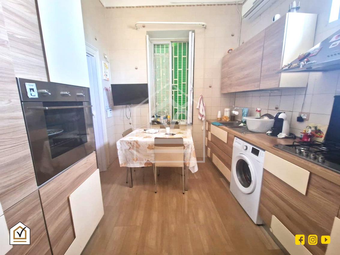 Entrando nell'appartamento si è accolti da un disimpegno che ci accoglie, sulla sinistra, in una cucina luminosa ed arieggiata con esposizione angolare, bagno finestrato, e a seguire, adiacente a quest'ultima, una cameretta con lucernario a muro. A destra del disimpegno vi è un ampio soggiorno con finestra, proseguendo camera da letto con balcone che affaccia su strada principale. Al di sopra del bagno, utilissimo soppalco.
