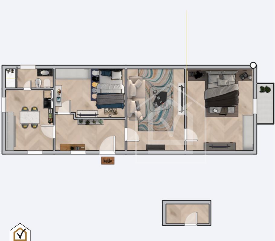 Oltre alla planimetria catastale, si offre una planimetria variante allegata a render : ci sarebbe un'ottima soluzione per avere la zona notte finestrata, questo è possibile grazie ai muri tramezzi presenti in tutto l'immobile.