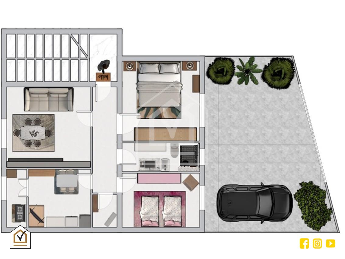 La disposizione interna prevede un salone provvisto di finestra , perfetto per accogliere ospiti e organizzare dei pranzi in famiglia. Una cucina abitabile anch'essa dotata di finestre che donano luminosità e comfort considerando l'ambiente molto arioso.