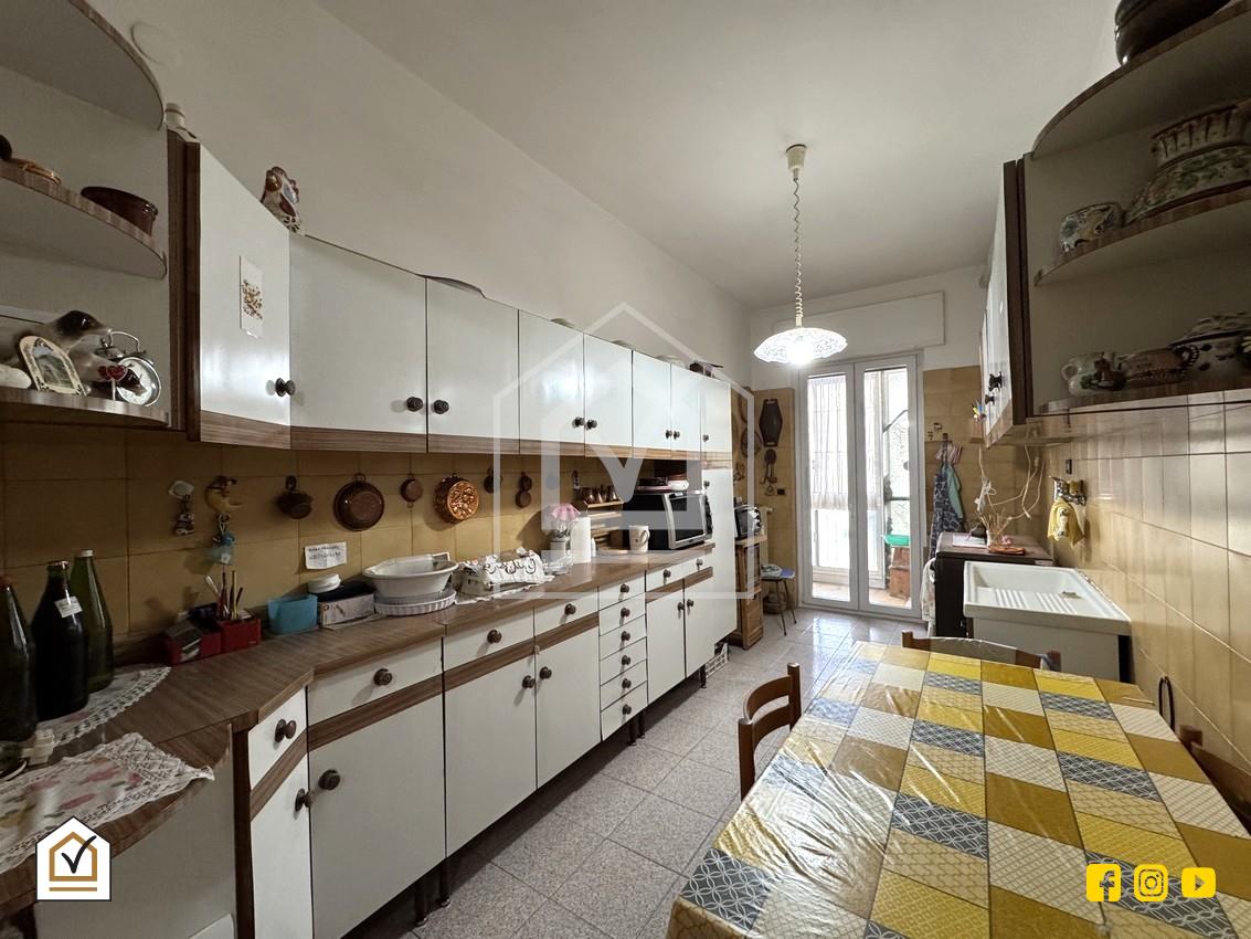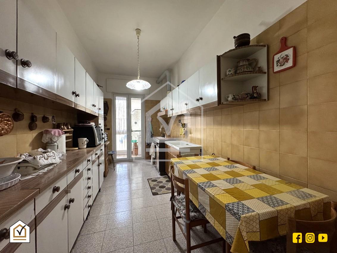 La proprietà immobiliare sviluppa una superficie di circa 95 mq. ed è così strutturata: al nostro ingresso verremo accolti dal disimpegno, che ci guiderà, sulla destra, alla zona giorno composta da cucina abitabile con veranda e ampio salone, con accesso su ampio balcone. Successivamente, sulla sinistra, è presente la zona notte, dove troviamo la cameretta, anch'essa fornita di accesso al balcone interno, bagno finestrato, utile ripostiglio e spaziosa camera matrimoniale.