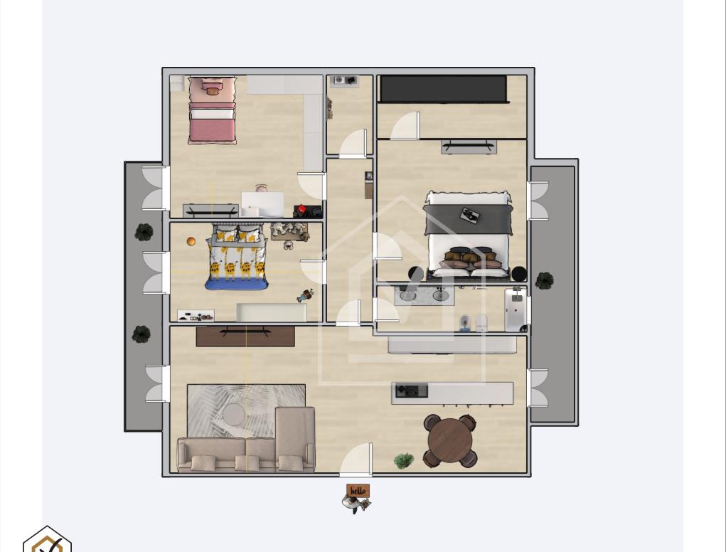 Entrando nell'immobile si è accolti da un ingresso spazioso. Subito a sinistra ampio salone, illuminato da finestra che si affaccia su uno dei due balconi, mentre a destra cucina abitabile con uscita diretta sul secondo balcone che affaccia sull'atrio condominiale.
