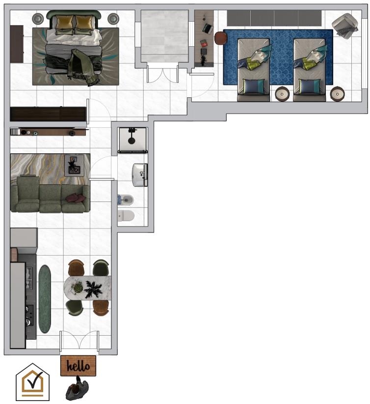 Parliamo di una soluzione davvero interessante: circa 60 mq interni, in ottimo stato, già libera e quindi pronta per essere abitata da subito. L’ingresso si apre direttamente nella zona giorno, un ambiente accogliente e funzionale che comprende soggiorno pranzo, angolo cottura e bagno padronale. Una disposizione pratica e razionale che permette di sfruttare ogni metro al meglio, creando uno spazio perfetto sia per rilassarsi che per ricevere ospiti.