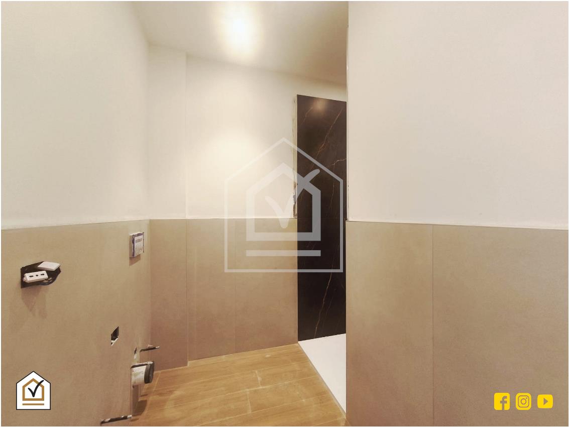 La ristrutturazione in corso prevede finiture contemporanee. Saranno installati infissi in PVC con vetrocamera, le pareti del bagno saranno rivestite con materiali effetto marmo o pietra, mentre le porte interne saranno a battente o scorrevoli con maniglie e serrature cromate satinate. L’immobile sarà dotato di impianto elettrico completamente nuovo, con placche e interruttori della linea BTicino Matix colore bianco, e impianto idrico anch’esso nuovo e certificato. Il sistema di climatizzazione sarà canalizzato caldo/freddo, garantendo un comfort uniforme in tutti gli ambienti e un’estetica pulita e minimale.