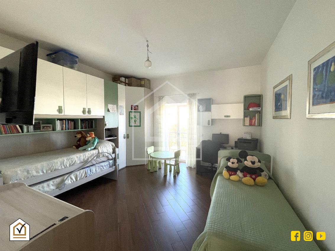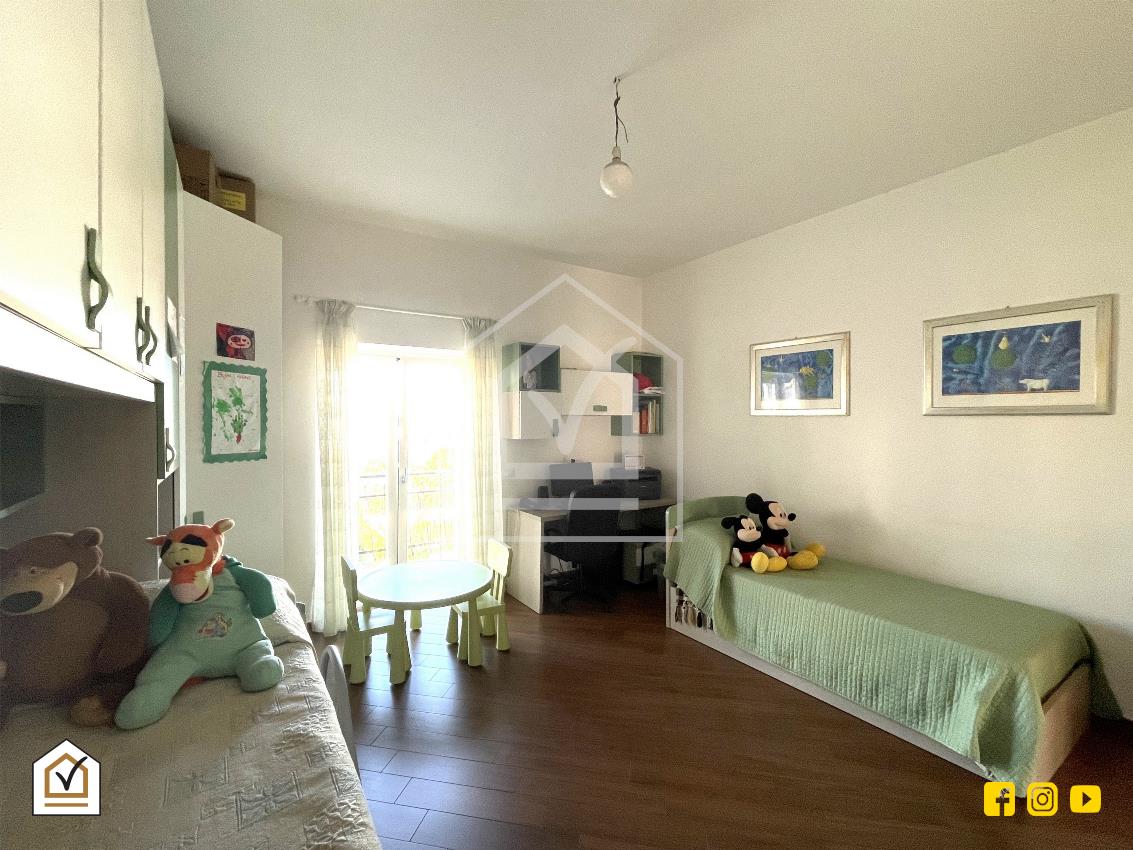La zona notte comprende una camera matrimoniale con bagno privato e affaccio su balcone, una cameretta con ulteriore balcone, un bagno padronale e un comodo ripostiglio.