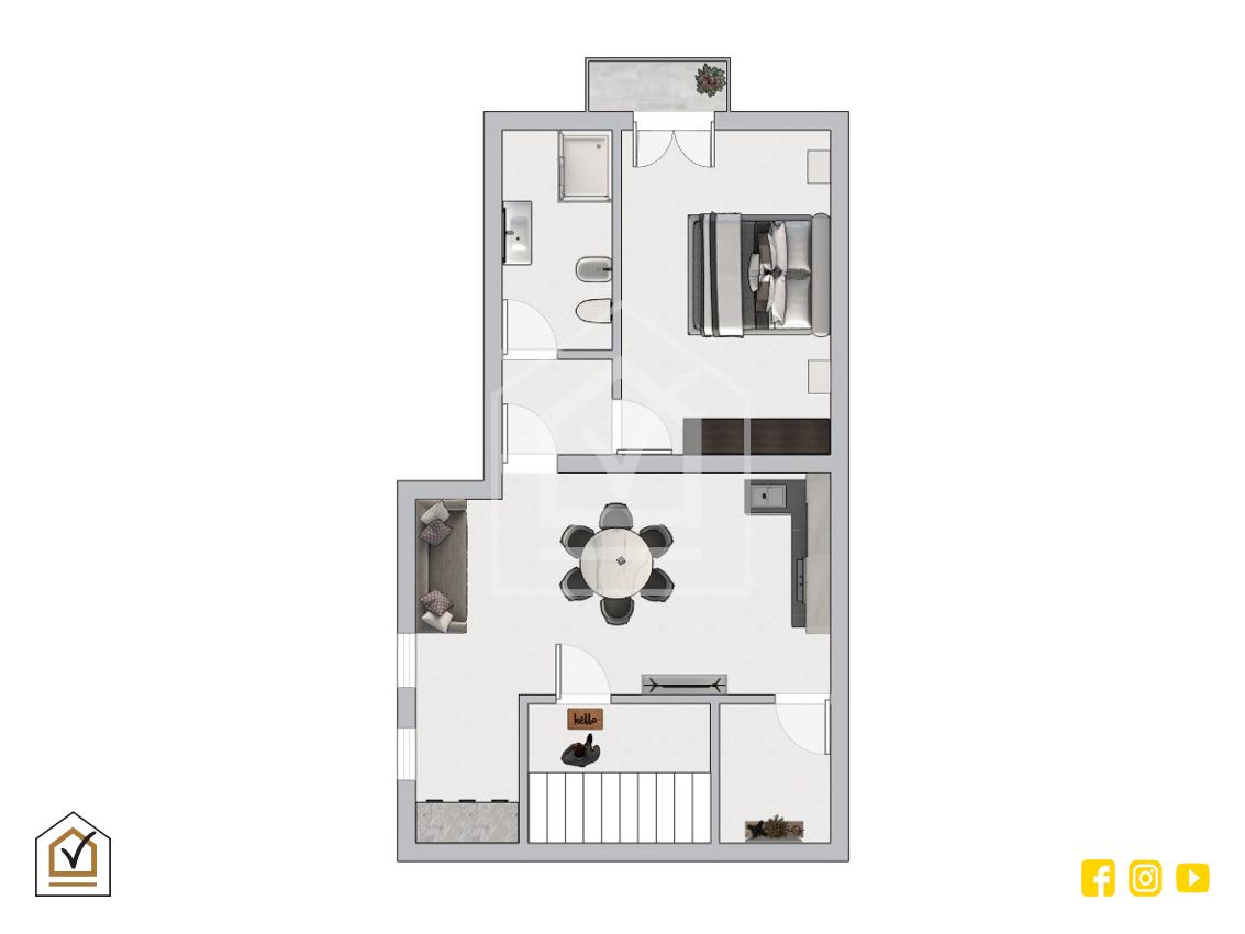 L’immobile si apre direttamente sul’ ampio open space, dove la zona living e la cucina si integrano armoniosamente. La disposizione interna risulta comoda e ben organizzata, ideale per chi desidera un’abitazione pratica e confortevole.