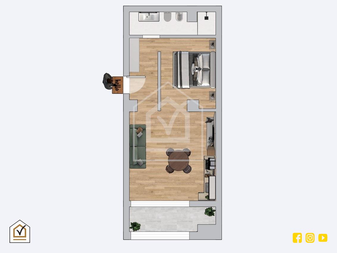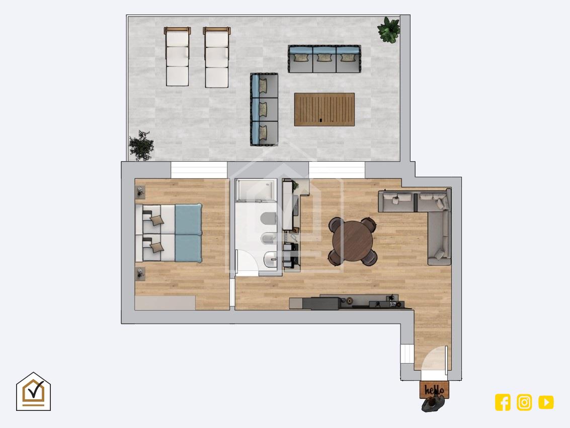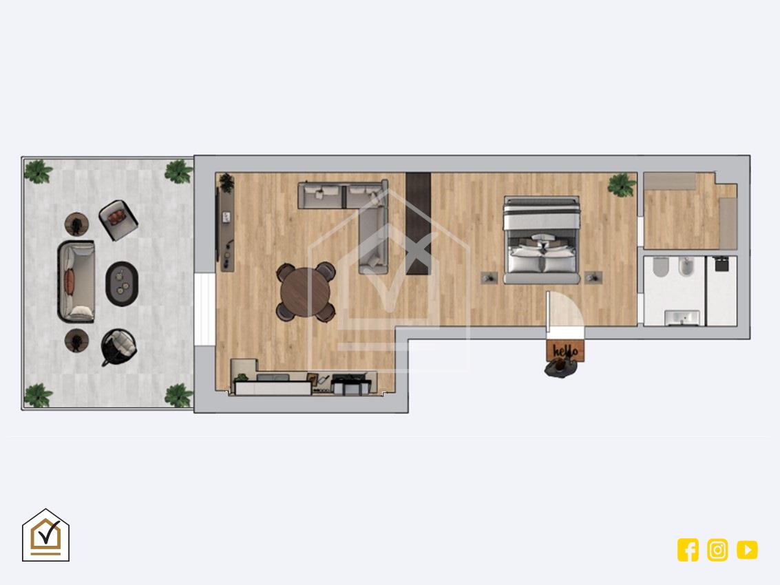 - Pavimentazione in gres porcellanato effetto legno;