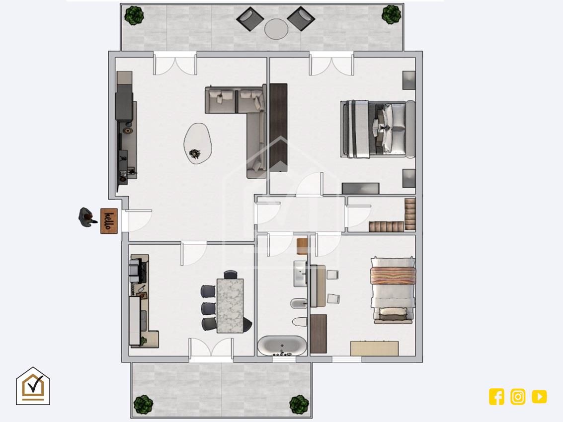 La posizione strategica dell'immobile, insieme alla presenza di comodi balconi, rendono unica la bellissima veduta di questo trivani che da' la possibilità di godersi i più bei orizzonti panoramici. L'appartamento sviluppa nel suo interno un metraggio complessivo di circa 95 mq con: ingresso, salone a vista, cucina abitabile, bagno comodo, 2 camere da letto e ripostiglio.