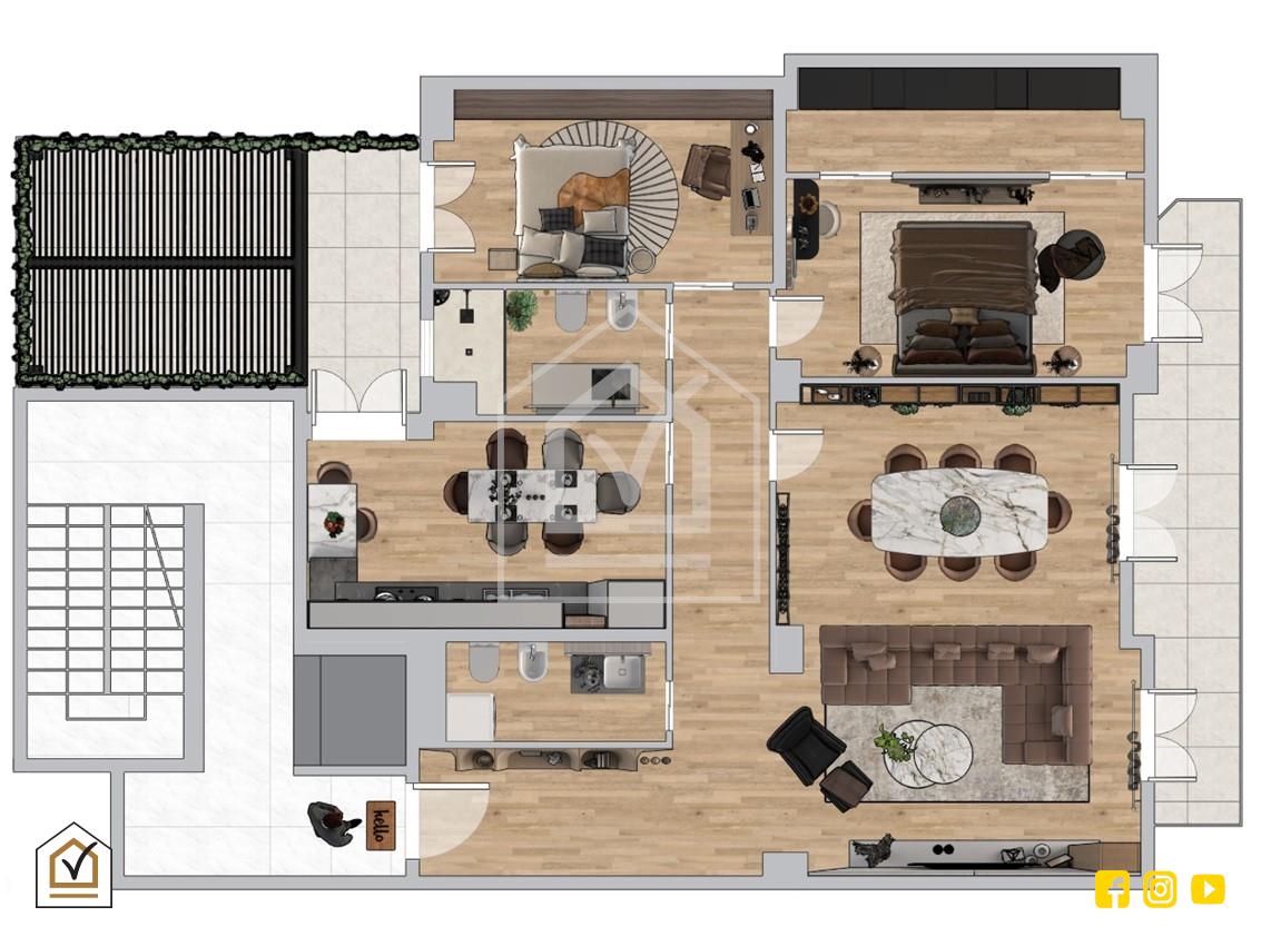 L’immobile di circa 130 mq interni è stato integralmente ristrutturato nel 2021, pronto per essere abitato senza alcun intervento. L’ingresso conduce a un soggiorno doppio ampio e rappresentativo, valorizzato dall’accesso diretto al balcone con affaccio sul Corso, elemento che garantisce luminosità e una vista urbana di pregio; la cucina è indipendente e ben organizzata, con uscita su un terrazzo a livello di circa 25 mq, uno spazio esterno concreto e fruibile, vero valore aggiunto per chi cerca comfort e vivibilità anche all’aperto, un ambiente ideale per la quotidianità, per ricevere ospiti o semplicemente per godere di uno spazio riservato in pieno centro cittadino. La zona notte, separata e funzionale, comprende due camere da letto, di cui la matrimoniale dotata di ampia cabina armadio con doppio ingresso, oltre a doppi servizi moderni. La distribuzione interna è razionale, pensata per garantire privacy, comfort e praticità.