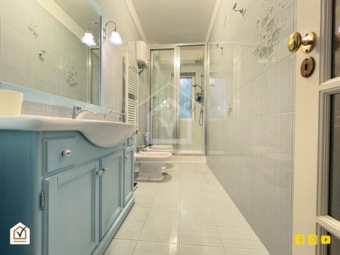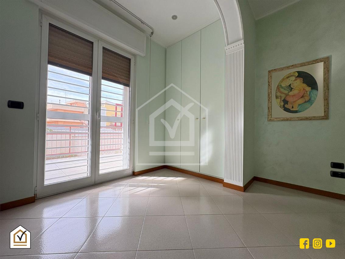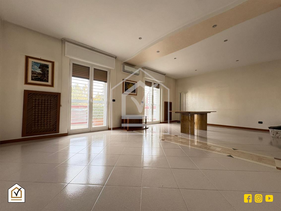 Varcata la soglia, un accogliente disimpegno funge da fulcro centrale della casa, separando con intelligenza la zona di rappresentanza dall’area quotidiana. Il salone doppio è il vero protagonista della zona giorno: un ambiente vasto e inondato di luce naturale, che si estende verso l’esterno grazie all’affaccio diretto sul balcone prospiciente Via Magna Grecia. Sul lato opposto, il tinello pranzo offre un’atmosfera conviviale e riservata, collegandosi armoniosamente alla veranda condonata con cucinino, un angolo funzionale e protetto che ottimizza ogni centimetro della casa. La zona notte, raccolta e silenziosa, ospita una spaziosa camera matrimoniale e un indispensabile ripostiglio, ideale per mantenere l’ordine in ogni stagione. A completare la soluzione troviamo il bagno padronale finestrato e il bagno di servizio.