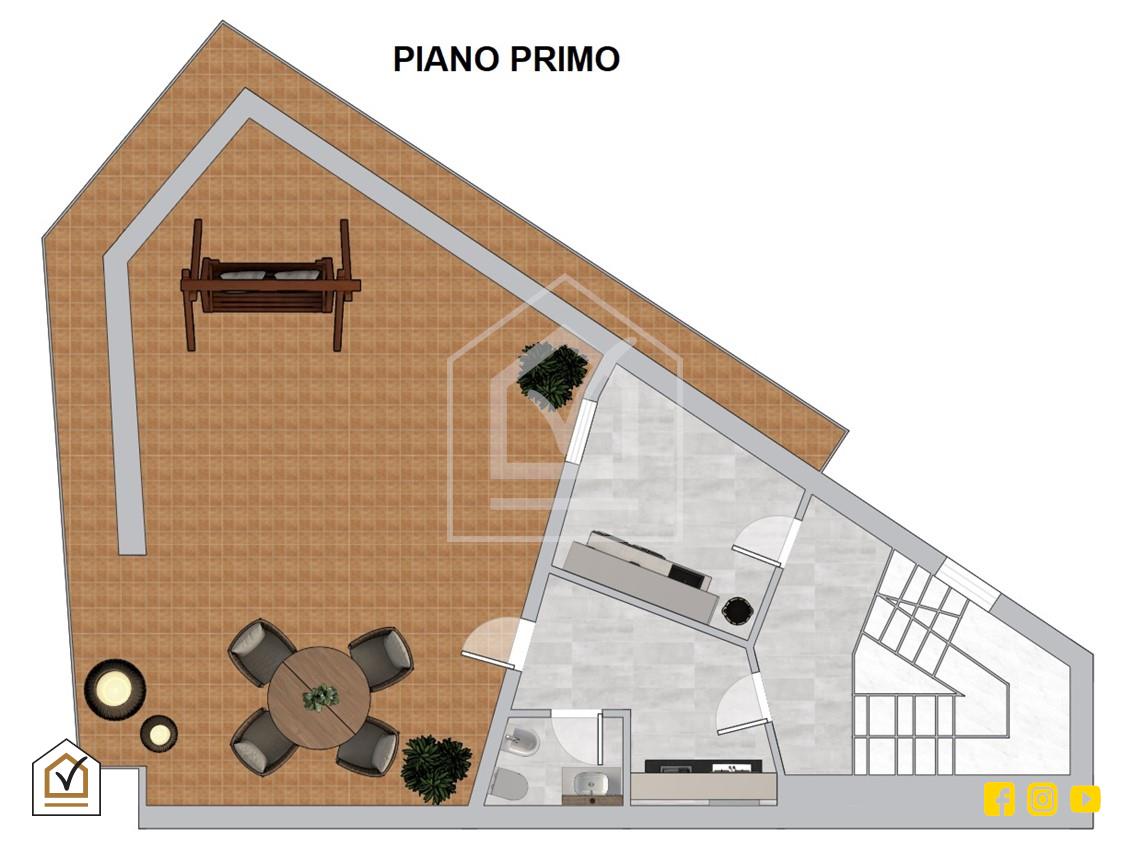 Il piano rialzato, cuore luminoso della casa grazie all'esposizione angolare, è organizzato per la massima praticità familiare. Include una cucina separata, una lavanderia dedicata e una zona notte con due camere, tra cui la matrimoniale servita da una cabina armadio su misura. Salendo al primo piano, si trova uno spazio versatile e autonomo con cameretta, bagno e angolo cottura di servizio, il cui valore è impreziosito da un ampio terrazzo angolare privato e videosorvegliato, perfetto come estensione esterna della zona living.